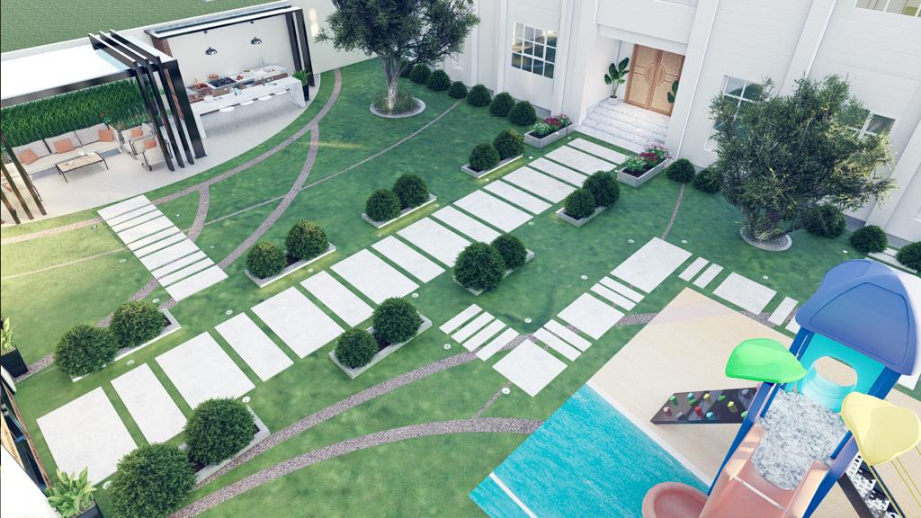 يقوم العميل باختيار التصميم المناسب له و يقوم مهندسينا بتصميم شكل الحديقه بحيث يتلائم مع شكل المبني و يتوافر الاتي :